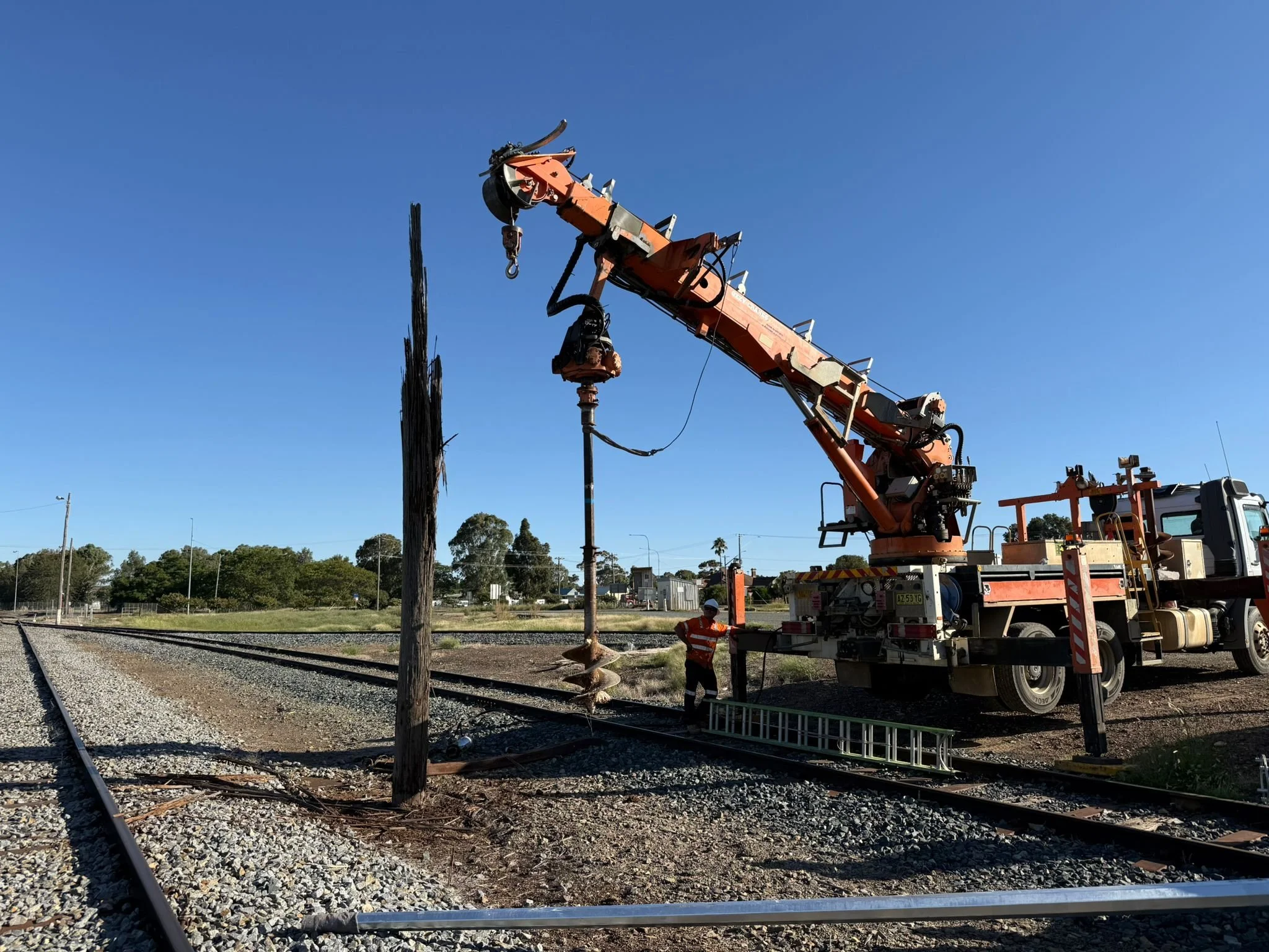 Specialized Electrical completed upgrade works in the Temora Rail Yard, replacing 15 ageing timber poles with 12 × 12 m galvanised steel poles fitted with LED lighting and 3 composite poles to improve durability and lighting performance.